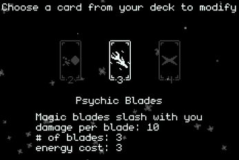 A combat-focused deckbuilder where your weapon deals no damage. Slash enemies to gain energy, use energy to play powerful cards. I highly recommend playing the tutorial before starting a new run.